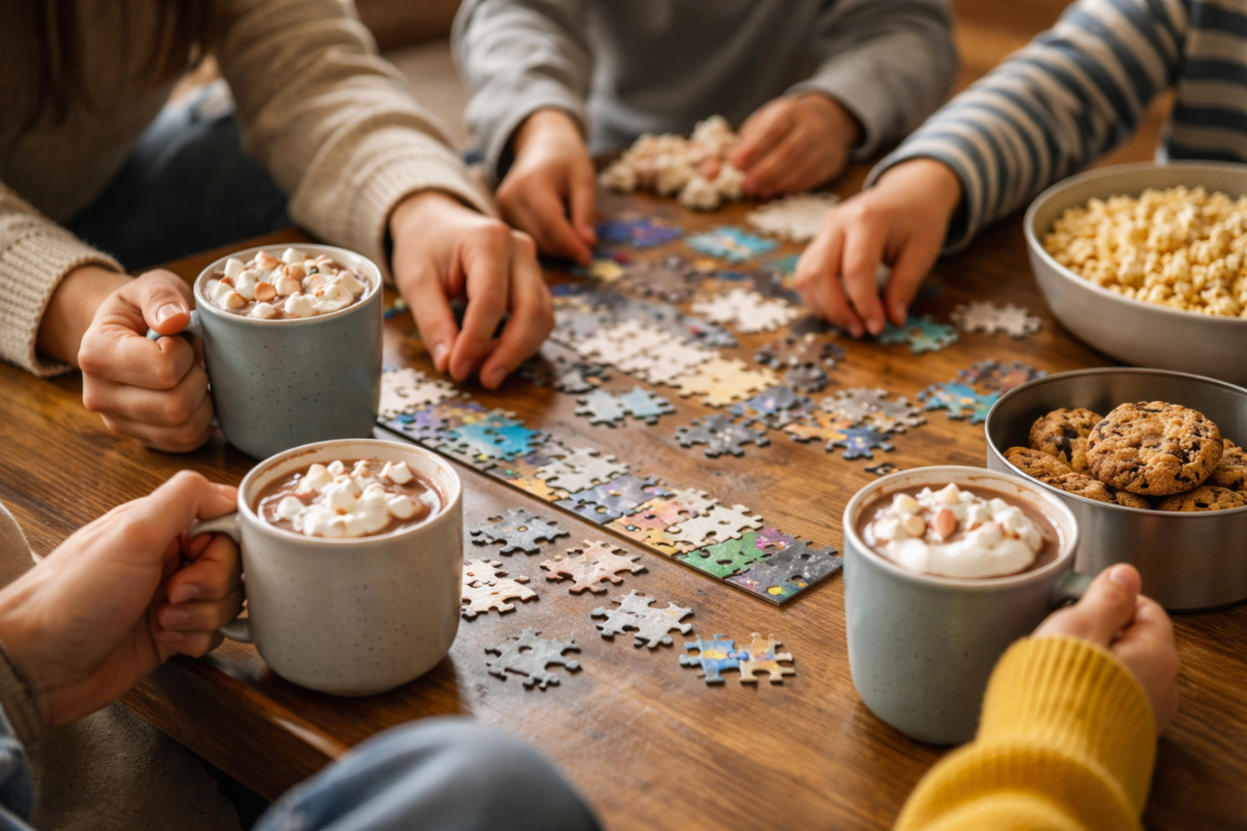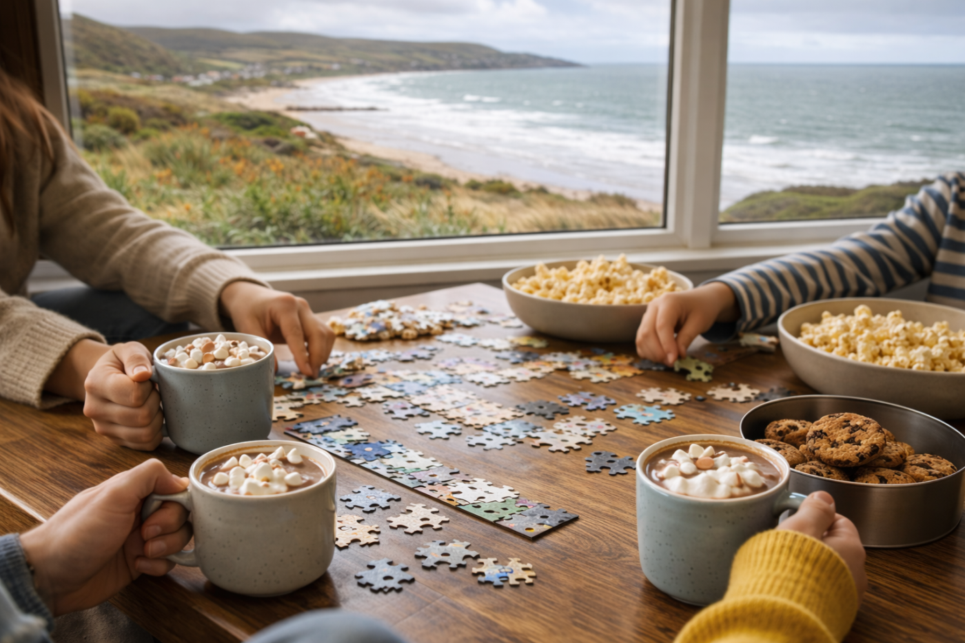 Every family stay during February half term includes a complimentary Family Bundle, with local hot chocolate and a family puzzle or game — ready for relaxed evenings in after days spent outdoors.